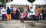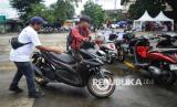 Pemudik melakukan registrasi untuk pengumpulan sepeda motornya dalam Program Mudik Gratis DKI Jakarta 2025 di Terminal Pulo Gadung, Jakarta, Selasa (25/3/2025). Program Mudik Gratis DKI Jakarta 2025 tersebut bertujuan menekan banyaknya pemudik yang menggunakan sepeda motor sehingga masyarakat dapat melaksanakan Idul Fitri dengan selamat, aman, dan nyaman. Rencananya pemberangkatan pemudik menggunakan bus akan dilakukan pada 27 Maret 2025 dari Monas, sementara truk yang membawa sepeda motor akan diberangkatkan pada 26 Maret 2025 dari Terminal Pulogadung. Kota tujuan pemudik sepeda motor yakni, Yogyakarta, Solo, Wonogiri dan Semarang. (FOTO : Republika/Prayogi)