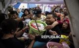 REPUBLIKA.CO.ID, SEMARANG -- Warga berebut untuk menukarkan kupon dengan paket sembako murah pada Bazar Ramadhan 2025 di halaman Balai Kota Semarang, Jawa Tengah, Selasa (25/3/2025).