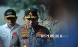 Kapolri Jenderal Pol Listyo Sigit Prabowo menyampaikan keterangan pers usai meninjau kesiapan puncak arus mudik di Dermaga Eksekutif Pelabuhan Merak, Banten, Rabu (26/3/2025). Tinjauan tersebut dilakukan untuk memastikan kesiapan, kelayakan dan keamanan kepada pemudik yang melakukan perjalanan libur lebaran 2025 di Pelabuhan Merak. Sementara, pemerintah memprediksi puncak arus mudik akan terjadi pada H-3 lebaran idul fitri atau 28 Maret 2025. (FOTO : Republika/Thoudy Badai)