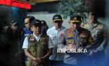 Kapolri Jenderal Pol Listyo Sigit Prabowo (kanan) berasama Menko Bidang Pembangunan Manusia dan Kebudayaan (PMK) Pratikno (kiri) menyampaikan keterangan saat meninjau kesiapan puncak arus mudik di Dermaga Eksekutif Pelabuhan Merak, Banten, Rabu (26/3/2025). Tinjauan tersebut dilakukan untuk memastikan kesiapan, kelayakan dan keamanan kepada pemudik yang melakukan perjalanan libur lebaran 2025 di Pelabuhan Merak. Sementara, pemerintah memprediksi puncak arus mudik akan terjadi pada H-3 lebaran idul fitri atau 28 Maret 2025. (FOTO : Republika/Thoudy Badai)