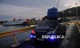 Kendaraan pemudik melaju masuk ke dalam kapal di Pelabuhan Merak, Banten, Kamis (27/3/2025). Pada H-4 lebaran 2025, suasana di Pelabuhan Merak mulai dipadati oleh pemudik yang hendak menyeberang ke Pulau Sumatera. Meskinl demikian, kondisi tersebut tidak menyebabkan antrean dan penumpukan di area dermaga. Hal tersebut lantaran kebijakan penerapan sistem satu jenis tiket, yakni tiket reguler yang membuat kendaraan pemudik dapat memasuki kapal melalui semua dermaga yang tersedia. Pemerintah memprediksi puncak arus mudik di Pelabuhan Merak akan terjadi pada Jumat (28/3) mendatang. (FOTO : Republika/Thoudy Badai)
