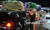 Pemudik menunggu antrean saat akan masuk ke dalam kapal di Pelabuhan Merak, Banten, Kamis (27/3/2025). Pada H-4 lebaran 2025, suasana di Pelabuhan Merak mulai dipadati oleh pemudik yang hendak menyeberang ke Pulau Sumatera. Meskinl demikian, kondisi tersebut tidak menyebabkan antrean dan penumpukan di area dermaga. Hal tersebut lantaran kebijakan penerapan sistem satu jenis tiket, yakni tiket reguler yang membuat kendaraan pemudik dapat memasuki kapal melalui semua dermaga yang tersedia. Pemerintah memprediksi puncak arus mudik di Pelabuhan Merak akan terjadi pada Jumat (28/3) mendatang. (FOTO : Republika/Thoudy Badai)