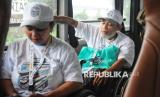 REPUBLIKA.CO.ID, JAKARTA -- Peserta mudik penyandang disabilitas berada di dalam bus saat pelepasan Mudik Bersama BUMN dan BSI 2025 di Kantor Pusat BSI, Jakarta, Kamis (27/3/2025).