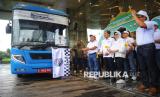 Plt. Direktur Utama BSI Bob Tyasika Ananta saat pelepasan Mudik Bersama BUMN dan BSI 2025 di Kantor Pusat BSI, Jakarta, Kamis (27/3/2025). Di tahun 2025 ini BSI memberangkatkan 1.019 pemudik dan sebanyak 379 di antaranya merupakan pemudik dengan kebutuhan khusus atau disabilitas. Untuk para pemudik disabilitas tersebut BSI menyediakan 3 bus khusus. (FOTO : Republika/Prayogi)