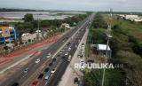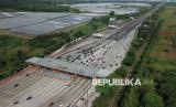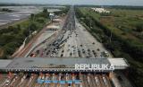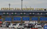Sejumlah kendaraan antre untuk memasuki Gerbang Tol Cikampek Utama, Karawang, Jawa Barat, Jumat (28/3/2025). Arus mudik pada H-3 Lebaran di GT Cikampek Utama ramai lancar. Pihak Kepolisian memberlakukan kebijakan satu arah dari GT Cikatama sampai GT Kalikangkung. Selama kebijakan satu arah ini semua gerbang tol menuju Jakarta ditutup. (FOTO : Republika/Edwin Dwi Putranto)