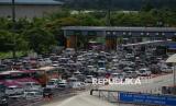 REPUBLIKA.CO.ID, KARAWANG -- Sejumlah kendaraan antre untuk memasuki Gerbang Tol Cikampek Utama, Karawang, Jawa Barat, Jumat (28/3/2025).