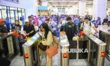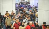 Pemudik mengantri untuk memasuki peron kereta cepat WHOOSH di Stasiun Kereta Cepat Halim, Jakarta, Jumat (28/3/2025). H-3 Lebaran KCIC mencatat adanya peningkatan jumlah penumpang di seluruh stasiun Whoosh. Diprediksi jumlah penumpang hari ini mencapai 18 hingga 20 ribu. Angka tersebut meningkat jika dibandingkan hari kemarin yang berkisar di 16 ribu penumpang per hari. Selain itu, KCIC memproyeksikan jumlah penumpang Whoosh selama angkutan Lebaran akan meningkat hingga 30%, mencapai hingga 24 ribu penumpang per hari. Dalam periode mudik kali ini KCIC telah menambah jumlah perjalanan Kereta sebanyak 62 jadwal dengan headway setiap 30 menit. Jumlahnya meningkat 20% dibandingkan angkutan lebaran 2024 dimana KCIC mengoperasikan sebanyak 52 perjalanan Whoosh per hari. (FOTO : Republika/Prayogi)