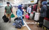 Pemudik berjalan menuju kereta cepat WHOOSH di Stasiun Kereta Cepat Halim, Jakarta, Jumat (28/3/2025). H-3 Lebaran KCIC mencatat adanya peningkatan jumlah penumpang di seluruh stasiun Whoosh. Diprediksi jumlah penumpang hari ini mencapai 18 hingga 20 ribu. Angka tersebut meningkat jika dibandingkan hari kemarin yang berkisar di 16 ribu penumpang per hari. Selain itu, KCIC memproyeksikan jumlah penumpang Whoosh selama angkutan Lebaran akan meningkat hingga 30%, mencapai hingga 24 ribu penumpang per hari. Dalam periode mudik kali ini KCIC telah menambah jumlah perjalanan Kereta sebanyak 62 jadwal dengan headway setiap 30 menit. Jumlahnya meningkat 20% dibandingkan angkutan lebaran 2024 dimana KCIC mengoperasikan sebanyak 52 perjalanan Whoosh per hari. (FOTO : Republika/Prayogi)