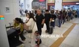 Pemudik melakukan check in sebelum keberangkatan kereta cepat WHOOSH di Stasiun Kereta Cepat Halim, Jakarta, Jumat (28/3/2025). H-3 Lebaran KCIC mencatat adanya peningkatan jumlah penumpang di seluruh stasiun Whoosh. Diprediksi jumlah penumpang hari ini mencapai 18 hingga 20 ribu. Angka tersebut meningkat jika dibandingkan hari kemarin yang berkisar di 16 ribu penumpang per hari. Selain itu, KCIC memproyeksikan jumlah penumpang Whoosh selama angkutan Lebaran akan meningkat hingga 30%, mencapai hingga 24 ribu penumpang per hari. Dalam periode mudik kali ini KCIC telah menambah jumlah perjalanan Kereta sebanyak 62 jadwal dengan headway setiap 30 menit. Jumlahnya meningkat 20% dibandingkan angkutan lebaran 2024 dimana KCIC mengoperasikan sebanyak 52 perjalanan Whoosh per hari. (FOTO : Republika/Prayogi)