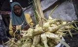 REPUBLIKA.CO.ID, SEMARANG -- Pedagang melayani pembeli kulit ketupat di kawasan Lamper Kidul, Semarang, Jawa Tengah, Ahad (30/3/2025).