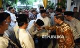 Gubernur DKI Jakarta Pramono Anung (kedua kanan) menyalami warga saat menggelar open house atau gelar griya di rumah dinas, Menteng, Jakarta, Senin (31/3/2025). Gubernur DKI Jakarta menggelar gelar griya saat Hari Raya Idul Fitri 1446 H yang dihadiri sejumlah tokoh dan berbagai elemen masyarakat. (FOTO : ANTARA FOTO/Indrianto Eko Suwarso)