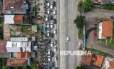Foto udara kendaraan terjebak kemacetan di Cicalengka, Kabupaten Bandung, Jawa Barat, Selasa (1/4/2025). Petugas Kepolisian menyatakan pada H2 Idul Fitri 1446 H kemacetan di ruas jalan nasional Cicalengka terjadi karena lonjakan pengendara dari arah Kota Bandung menuju kawasan wisata di wilayah Kabupaten Garut dan Kabupaten Tasikmalaya. (FOTO : ANTARA FOTO/Raisan Al Farisi)