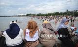 Sejumlah warga berwisata saat libur lebaran di Pantai Ancol Taman Impian, Jakarta, Selasa (1/5/2025). Momen libur Lebaran dimanfaatkan oleh warga untuk berwisata. Salah satu tujuan wisata favorit warga adalah Ancol. Tercatat pada hari kedua lebaran jumlah kunjungan wisatawan ke objek wisata itu mencapai 55 ribu orang hingga pukul 17.00 WIB. Pihak Ancol menargetkan total pengunjung selama libur Lebaran, yang berlangsung dari 31 Maret hingga 13 April 2025, mencapai 660 ribu orang. (FOTO : Republika/Prayogi)