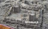 Istana pasir yang dibuat oleh warga yang berlibur lebaran di Pantai Ancol Taman Impian, Jakarta, Selasa (1/5/2025). Momen libur Lebaran dimanfaatkan oleh warga untuk berwisata. Salah satu tujuan wisata favorit warga adalah Ancol. Tercatat pada hari kedua lebaran jumlah kunjungan wisatawan ke objek wisata itu mencapai 55 ribu orang hingga pukul 17.00 WIB. Pihak Ancol menargetkan total pengunjung selama libur Lebaran, yang berlangsung dari 31 Maret hingga 13 April 2025, mencapai 660 ribu orang. (FOTO : Republika/Prayogi)