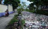 REPUBLIKA.CO.ID, TANGERANG -- Pengendara sepeda motor melintas di dekat aliran Wates Kalimati yang dipenuhi sampah di Teluknaga, Kabupaten Tangerang, Banten, Rabu (2/4/2025).