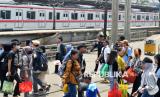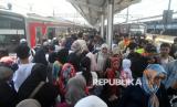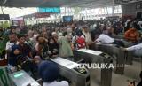 REPUBLIKA.CO.ID, BOGOR -- Sejumlah penumpang KRL Commuter Line memadati peron di Stasiun Bogor, Jawa Barat, Kamis (3/4/2025).