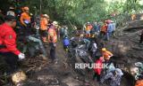 REPUBLIKA.CO.ID, MOJOKERTO -- Tim SAR Gabungan dari BPBD Kabupaten Mojokerto, BPBD Kota Batu, Tahura, relawan, polisi dan TNI mengevakuasi korban tertimbun longsor di Jalan Raya Sumberbrantas, kawasan Hutan Raden Soerjo, Blok Watulumpang, Kecamatan Pacet, Mojokerto, Jawa Timur, Jumat (4/4/2025).