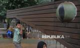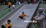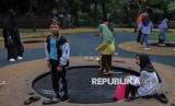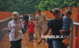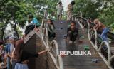 Warga berwisata di Tebet Eco Park, Jakarta, Sabtu (5/4/2025). Tebet Eco Park menjadi salah satu destinasi favorit warga untuk menfaatkan waktu libur lebaran bersama keluarga dengan menyajikan area ruang terbuka hijau, beragam arena bermain anak, hingga jembatan untuk spot foto instagramable. Taman tersebut merupakan fasilitas umum yang yang diperuntukan bagi warga tanpa pungutan biaya masuk. (FOTO : Republika/Thoudy Badai)