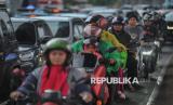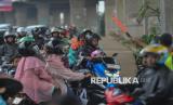 Pemudik mengendarai motor melintasi jalur Inspeksi Kalimalang, Bekasi Jawa Barat, Sabtu (5/4/2025). Menurut data Pos Pengamanan Sumber Arta Polsek Bekasi Barat, jumlah pemudik yang melintas di jalur Inspeksi Kalimalang pada arus balik Sabtu (5/4) pukul 17.00 WIB menuju arah Jakarta sebanyak 423.000 kendaraan roda dua dan 242.000 kendaraan roda empat, sementara puncak arus balik kendaraan roda dua diprediksi terjadi pada Sabtu (5/4/2025) malam. (FOTO : Republika/Thoudy Badai)