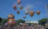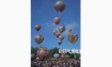 REPUBLIKA.CO.ID, WONOSOBO -- Sejumlah warga menyaksikan penerbangan balon udara saat Festival Balon Udara 2025 di alun-alun Kota Wonosobo, Jawa Tengah, Ahad ( 6/4/2025).