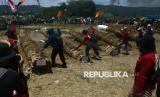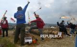 Sejumlah peserta menyalakan Kuluwung (meriam karbit) saat pesta rakyat Kuluwung Sunda di Kampung Jatinuggal, Desa Sukasirna, Jonggol, Kabupaten Bogor, Jawa Barat, Ahad (6/4/2025). Pesta Rakyat yang diselenggarakan setelah Lebaran di area dekat sungai Cipamingkis, Bogor tersebut sebagai ajang silaturahim antar kampung serta sebagai pelestarian budaya asli Sunda dan hiburan rakyat. (FOTO : ANTARA FOTO/Arif Firmansyah)