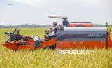 REPUBLIKA.CO.ID, MAJALENGKA -- Presiden Prabowo Subianto mengoperasikan mesin pemanen bersama Menteri Pertanian Andi Amran Sulaiman dan Menteri Koordinator Bidang Pangan Zulkifli Hasan saat panen raya padi di Desa Randegan Wetan, Ligung, Majalengka, Jawa Barat, Senin (7/4/2025).