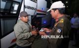 REPUBLIKA.CO.ID, BADUNG -- Anggota Satpol PP Kabupaten Badung memeriksa kartu tanda penduduk (KTP) milik penumpang bus AKAP saat inspeksi mendadak (sidak) pada arus balik Lebaran di Terminal Mengwi, Badung, Bali, Senin (7/4/2025).