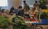 Aparatur Sipil Negara (ASN) beraktivitas pada hari pertama kerja di Balai Kota DKI Jakarta, Selasa (8/4/2025). Gubernur DKI Jakarta, Pramono Anung, menyatakan jumlah ketidakhadiran ASN Jakarta pada hari pertama kerja usai libur lebaran dan cuti bersama 2025 berada di angka 2,37 persen. Menurutnya sebagian pegawai melaksanakan WFH, mengikuti Surat Edaran (SE) yang diterbitkan Kementerian Pendayagunaan Aparatur Negara dan Reformasi Birokrasi (PAN-RB) terkait pemberlakuan WFA diperbolehkan hingga besok. (FOTO : Republika/Thoudy Badai)