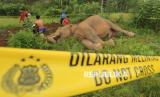 Gajah jantan yang diperkirakan berusia 20 tahun tersebut ditemukan warga telah mati di area persawahan yang diduga akibat tersengat arus listrik penghalau hama babi.