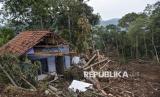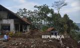 REPUBLIKA.CO.ID, CIAMIS -- Warga berada di depan rumahnya yang terdampak bencana tanah longsor di Desa Sadapaingan, Kecamatan Panawangan, Ciamis, Jawa Barat, Sabtu (12/4/2025).