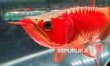 Salah satu ikan arwana merah peserta Kontes Ikan Arowana Piala Wali Kota Bandung, di Bandung Banceuy Center, Jalan Banceuy, Kota Bandung, Ahad (13/4/2025). Acara yang digelar Club Indonesia Arowana (CIA) Red Dragon Indonesia (RDI) ini diikuti oleh sedikitnya 100 peserta dari berbagai daerah di antaranya dari luar negeri seperti Singapura, Vietnam, Cina, dan India. (FOTO : Edi Yusuf)
