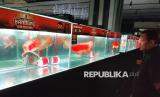 REPUBLIKA.CO.ID, BANDUNG -- Sedikitnya 100 ikan arwana merah tampil pada Kontes Ikan Arowana Piala Wali Kota Bandung, di Bandung Banceuy Center, Jalan Banceuy, Kota Bandung, Ahad (13/4/2025).