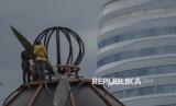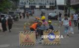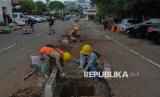 Pekerja menyelesaikan proyek penataan kawasan Blok M, Jakarta Selatan, Selasa (15/4/2025). Pemprov DKI Jakarta melakukaan penataan kawasan Blok M yang meliputi perbaikan area parkir, menambah area terbuka hijau, merenovasi bagian ruko Mal hingga perbaikan toilet. Hal tersebut dilakukan sebagai upaya menjadikan kawasan Blok M sebagai kawasan Ibu Kota ASEAN, mengingat kawasan tersebut dekat dengan kantor Sekretariat ASEAN serta menjadi ruang aktivitas warga dan pelaku UMKM. (FOTO : Republika/Thoudy Badai)