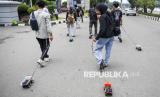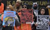 REPUBLIKA.CO.ID, SAMARINDA -- Pengunjuk rasa yang tergabung dalam Koalisi Masyarakat Sipil membawa poster saat melakukan aksi di depan Kantor Gubernur Kalimantan Timur di Samarinda, Selasa (15/4/2025).