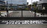 Sebuah spanduk milik Koalisi Masyarakat Sipil diletakan di depan Kantor Gubernur Kalimantan Timur di Samarinda, Selasa (15/4/2025). Koalisi Masyarakat Sipil yang berasal dari Muara Kate, Kabupaten Paser itu menuntut penyelesaian kasus pembunuhan tokoh masyarakat adat Dayak Russel yang aktif menyuarakan pelanggaran penggunaan jalan umum untuk aktivitas hauling batubara. (FOTO : ANTARA FOTO/M Risyal Hidayat)