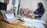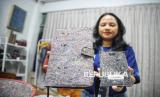 Karyawan menunjukkan hasil daur ulang dari pakaian bekas atau limbah tekstil di Kantor EcoTouch, Jakarta, Selasa (15/4/2025). Pakaian yang berasal dari sumbangan masyarakat dan perusahaan ini diolah menjadi produk ramah lingkungan bernilai tinggi, seperti peredam bangunan, benang, kain tenun, dan merchandise. Program daur ulang ini menjadi upaya EcoTouch dalam mengurangi limbah tekstil,sekaligus menciptakan nilai ekonomi dari limbah. (FOTO : Republika/Prayogi)