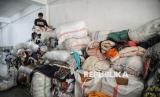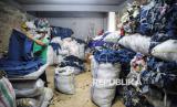 Pekerja merapikan pakaian bekas untuk didaur ulang di Kantor EcoTouch, Jakarta, Selasa (15/4/2025). Pakaian yang berasal dari sumbangan masyarakat dan perusahaan ini diolah menjadi produk ramah lingkungan bernilai tinggi, seperti peredam bangunan, benang, kain tenun, dan merchandise. Program daur ulang ini menjadi upaya EcoTouch dalam mengurangi limbah tekstil,sekaligus menciptakan nilai ekonomi dari limbah. (FOTO : Republika/Prayogi)