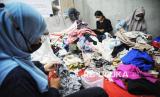 Relawan memisahkan asesoris pada pakaian bekas yang kemudian akan didaur ulang di Kantor EcoTouch, Jakarta, Selasa (15/4/2025). Pakaian yang berasal dari sumbangan masyarakat dan perusahaan ini diolah menjadi produk ramah lingkungan bernilai tinggi, seperti peredam bangunan, benang, kain tenun, dan merchandise. Program daur ulang ini menjadi upaya EcoTouch dalam mengurangi limbah tekstil,sekaligus menciptakan nilai ekonomi dari limbah. (FOTO : Republika/Prayogi)