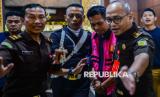 REPUBLIKA.CO.ID, SERANG -- Kepala Dinas Lingkungan Hidup Kota Tangerang Selatan Wahyunoto Lukman berjalan menuju mobil tahanan usai ditetapkan sebagai tersangka dalam kasus dugaan korupsi pengelolaan sampah di Kejaksaan Tinggi Banten, Kota Serang, Banten, Selasa (15/4/2025).