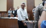 Terdakwa kasus dugaan perintangan penyidikan kasus korupsi Harun Masiku dan pemberian suap Hasto Kristiyanto bersiap menjalani sidang lanjutan di Pengadilan Tipikor, Jakarta, Kamis (17/4/2025). Sidang tersebut beragendakan mendengar keterangan saksi antara lain yakni mantan Ketua Komisi Pemilihan Umum (KPU) Arief Budiman dan mantan anggota KPU Wahyu Setiawan. Sementara salah satu saksi yaitu mantan Anggota Bawaslu yaitu Agustiani Tio Fridelina tidak hadir dalam persidangan. (FOTO : Republika/Prayogi)