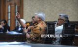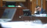 Terdakwa kasus dugaan perintangan penyidikan kasus korupsi Harun Masiku dan pemberian suap Hasto Kristiyanto menyimak keterangan saksi pada sidang lanjutan di Pengadilan Tipikor, Jakarta, Kamis (17/4/2025). Sidang tersebut beragendakan mendengar keterangan saksi antara lain yakni mantan Ketua Komisi Pemilihan Umum (KPU) Arief Budiman dan mantan anggota KPU Wahyu Setiawan. Sementara salah satu saksi yaitu mantan Anggota Bawaslu yaitu Agustiani Tio Fridelina tidak hadir dalam persidangan. (FOTO : Republika/Prayogi)