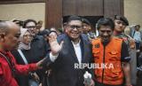 Terdakwa kasus dugaan perintangan penyidikan kasus korupsi Harun Masiku dan pemberian suap Hasto Kristiyanto usai sidang lanjutan di Pengadilan Tipikor, Jakarta, Kamis (17/4/2025). Sidang tersebut beragendakan mendengar keterangan saksi antara lain yakni mantan Ketua Komisi Pemilihan Umum (KPU) Arief Budiman dan mantan anggota KPU Wahyu Setiawan. Sementara salah satu saksi yaitu mantan Anggota Bawaslu yaitu Agustiani Tio Fridelina tidak hadir dalam persidangan. (FOTO : Republika/Prayogi)