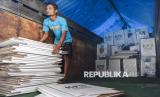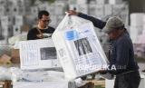 REPUBLIKA.CO.ID, TENGGARONG -- Pekerja mengangkat logistik pemungutan suara ulang (PSU) di gudang logistik KPU Kutai Kartanegara di Tenggarong, Kukar, Kalimantan Timur, Kamis (17/4/2025).