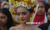 Para peserta mengikuti parade dengan mengenakan kebaya dan pakaian tradisional dari berbagai daerah.