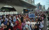 Warga mengikuti kegiatan parade Hari Kartini di kawasan Bundaran Hotel Indonesia, Jakarta, Ahad (20/4/2025). Kegiatan tersebut dalam rangka memperingati hari kartini yang diperingati setiap 21 April. Para peserta mengikuti parade dengan mengenakan kebaya dan pakaian tradisional dari berbagai daerah. Tak hanya itu, sejumlah peserta terlihat membawa poster berisi pesan-pesan inspiratif dan peran perempuan pada masyarakat masa kini. Kegiatan tersebut digelar dalam rangka menggaungkan nilai-nilai kesetaraan perempuan yang digaungkan dan diperjuangkan Kartini. (FOTO : Republika/Thoudy Badai)