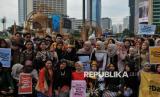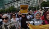 REPUBLIKA.CO.ID, JAKARTA -- Warga mengikuti kegiatan parade Hari Kartini di kawasan Bundaran Hotel Indonesia, Jakarta, Ahad (20/4/2025).
