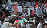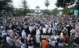REPUBLIKA.CO.ID, BANDUNG -- Puluhan ribu massa mengikuti Aksi Soilidaritas dan Doa Untuk Palestina, di Gedung Sate, Kota Bandung, Ahad (20/4/2025).
