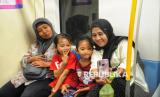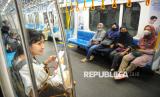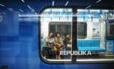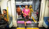 Penumpang berada di dalam kereta MRT di Halte Bundaran HI, Jakarta, Senin (21/4/2025). Pemprov DKI Jakarta menggratiskan jasa angkutan umun TransJakarta, MRT dan LRT untuk perempuan pada hari ini dalam rangka memperingati Hari Kartini. Ada jalur khusus yang disediakan bagi perempuan untuk memanfaatkan skema tarif khusus hari ini. (FOTO : Republika/Prayogi)