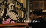 REPUBLIKA.CO.ID, Umat Katolik berdoa di dekat foto Paus Fransiskus sebelum mengikuti misa harian di Gereja Katedral, Jakarta, Senin (21/4/2025).