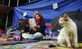 REPUBLIKA.CO.ID, JAKARTA -- Massa perempuan Piknik Melawan membaca buku saat menggelar aksi kreatif di depan Gerbang Pancasila Gedung DPR/MPR RI, Jakarta, Senin (21/4/2025).